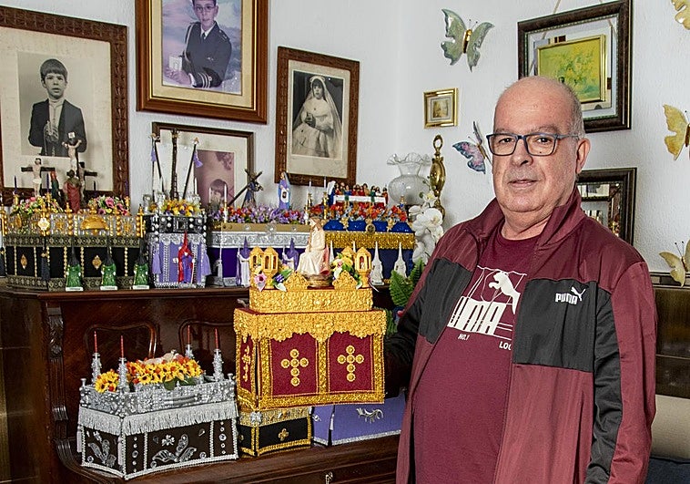 Este vecino del barrio de Santidad, en Arucas, es un fiel apasionado a hacer de forma artesanal pasos -tanto de palio como de misterio- y tronos en miniatura con materiales reciclados, motivado por su fe…